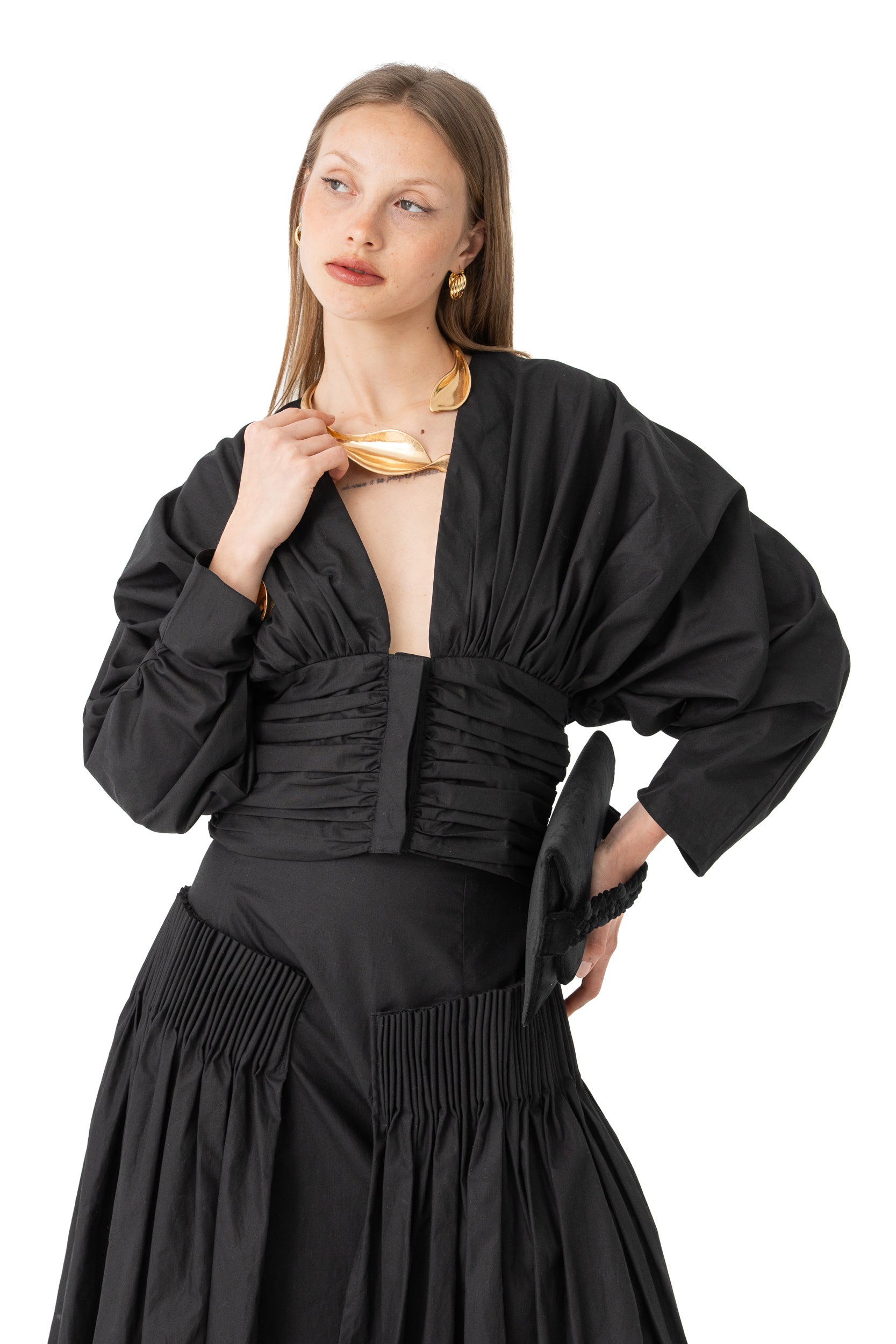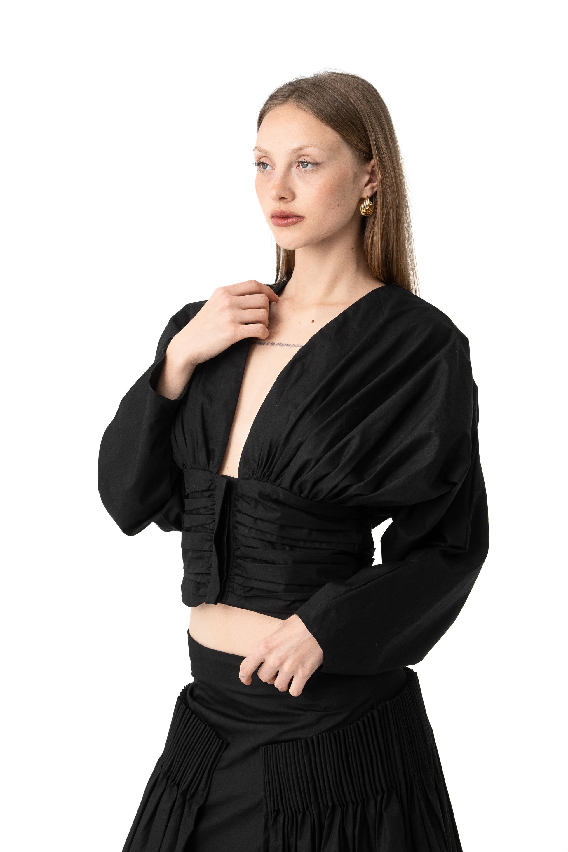 This chic draped waist top features elegant puff sleeves and is crafted from soft, breathable poplin fabric. The draped detailing creates a flattering silhouette, while the puff sleeves add a touch of femininity and style. Perfect for dressing up , this versatile top pairs beautifully with jeans or skirts, making it a must-have addition to your wardrobe. Available in two colors.