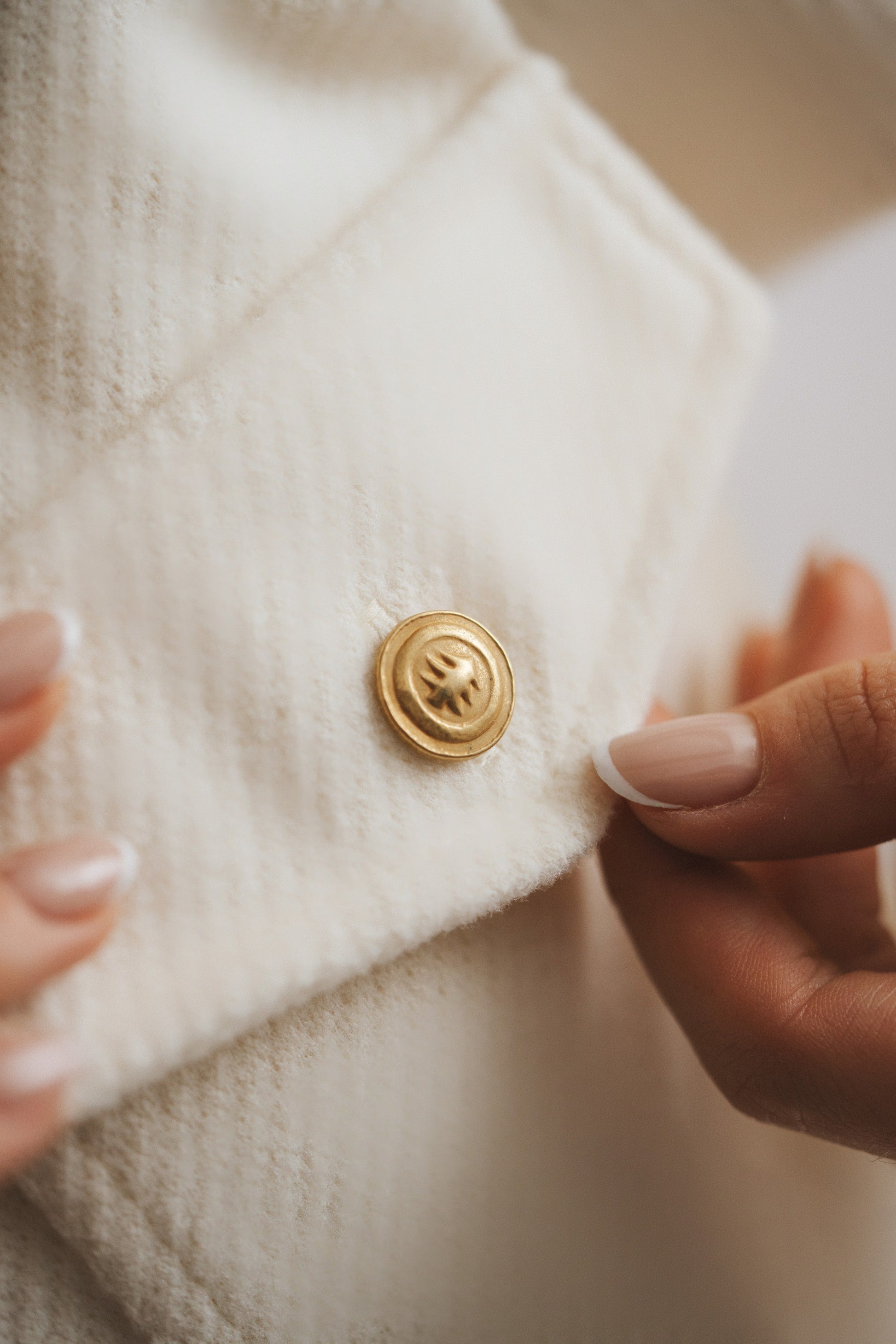 Closure 10 big brass buttons and 4 small brass buttons.